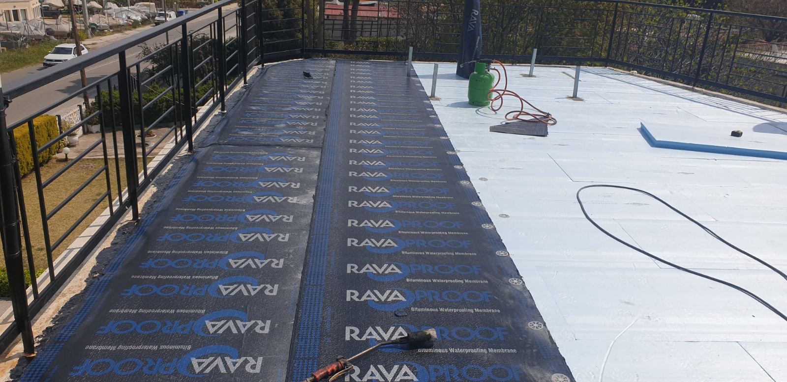 Κατασκευή θερμομόνωσης από πλάκες εξηλασμένης πολυστερίνης και στεγάνωση δώματος με ελαστομερείς ασφαλτικές μεμβράνες