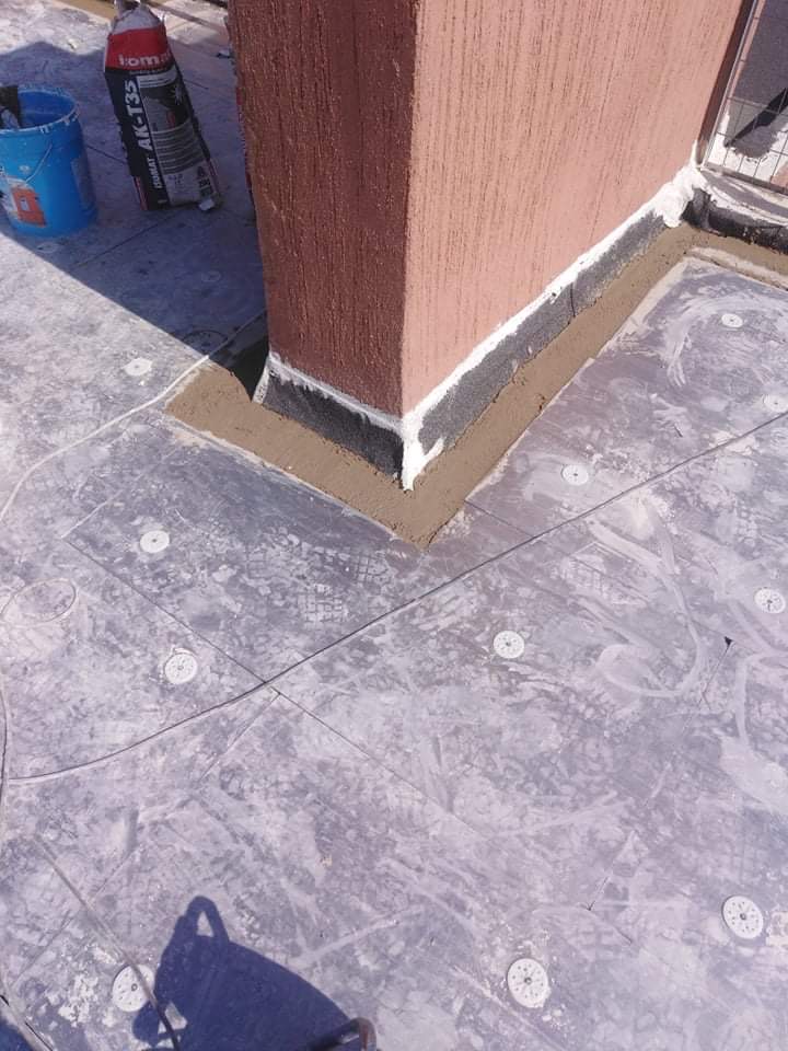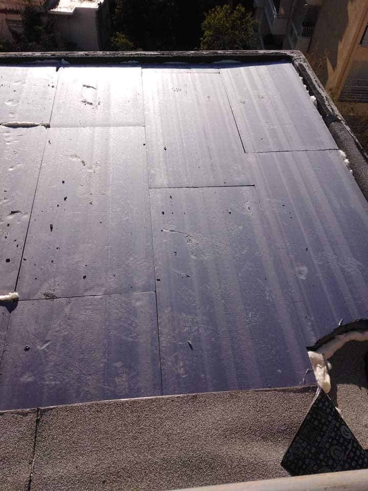 Θερμοϋδρομόνωση δώματος και τελική επιφάνεια βατότητας από πλάκες πεζοδρομίου.