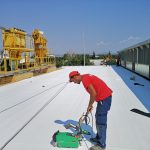 Μη βατό δώμα βιομηχανίας Τοποθεσία: ΣΙΝΔΟΣ Επιφάνεια: 400m2 Κατηγορία: Στεγανοποίηση Στεγανοποίηση μεταλλικού δώματος με ανακλαστική συνθετική μεμβράνη TPO.